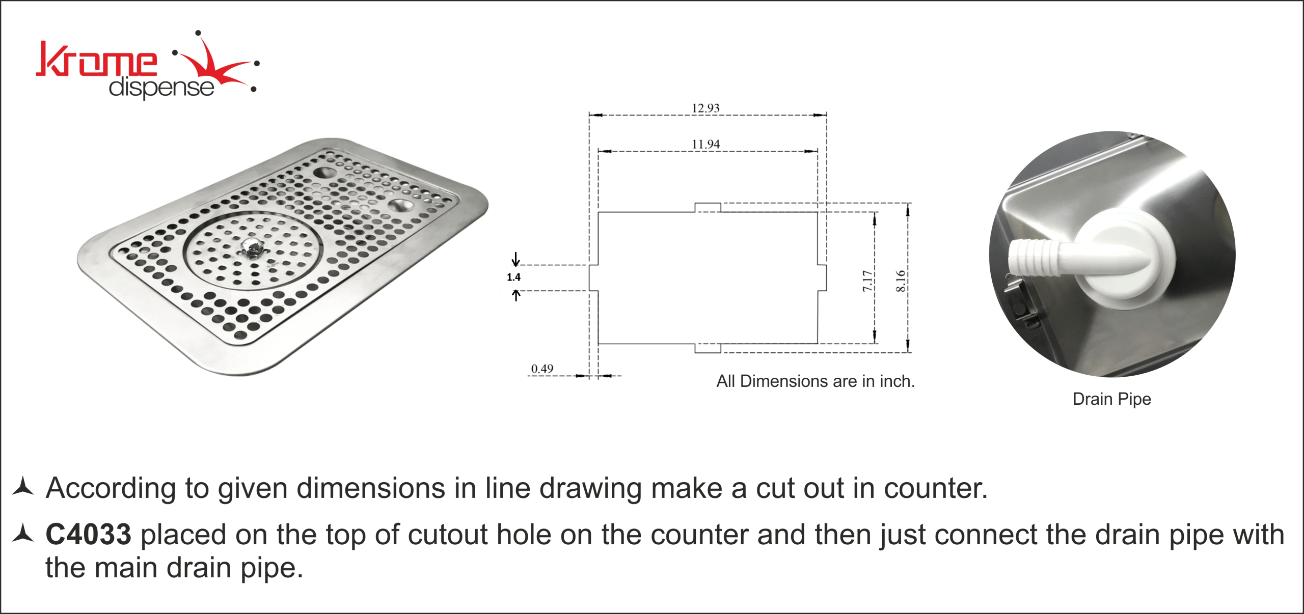 صينية تصريف مياه من كروم Krome، مقاس 14 × 9″ – مُدمج مع حوض بطول 300 مم